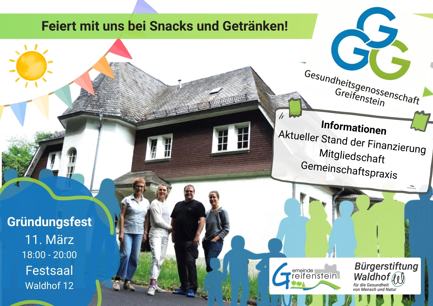 Die frisch in die Gründung eingetretene Gesundheitsgenossenschaft Greifenstein heißt alle interessierten Menschen aus der Bürger:innenschaft und Unternehmen der Region herzlich willkommen zum Gründungsfest am 11. März (18-20 Uhr) im Festsaal am Waldhof!